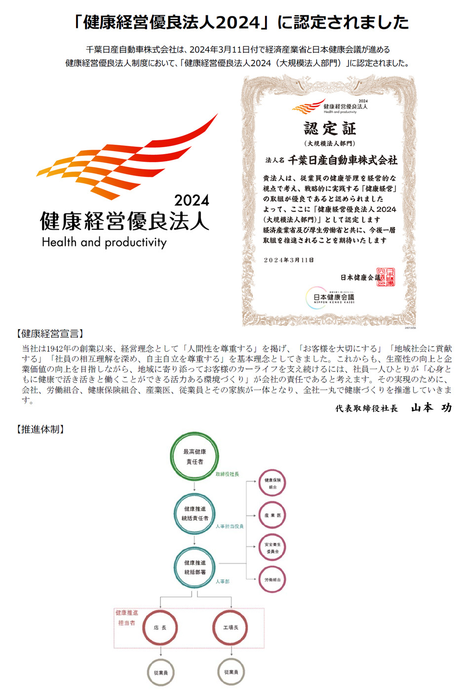 代表取締役社長 山本 功 |