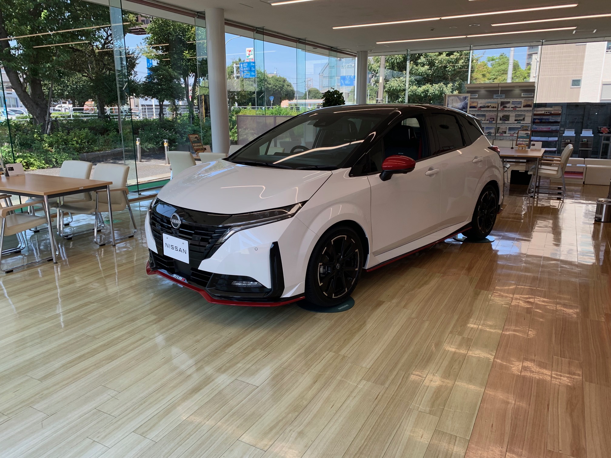 屋外展示コーナーです。電気自動車や、e-POWER搭載車を始め、人気の軽自動車など「技術の日産」を体感いただけるような試乗車を多数ご用意しております。試乗のご希望などございましたらお気軽にスタッフにお声がけください。