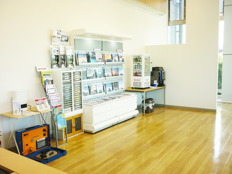 お車の整備でお待ちいただく間など、こちらのコーナーでゆっくりとお過ごしください。