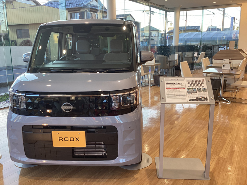 ショールーム内には、新型ルークスを展示しておりますので、ゆっくりご覧ください。なお、展示車は変更となる場合がございますので、ご了承ください。