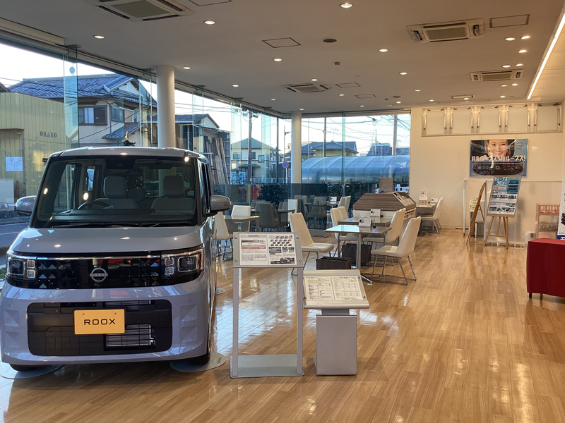 ショールーム内には、新型ルークスを展示しておりますので、ゆっくりご覧ください。なお、展示車は変更となる場合がございますので、ご了承ください。